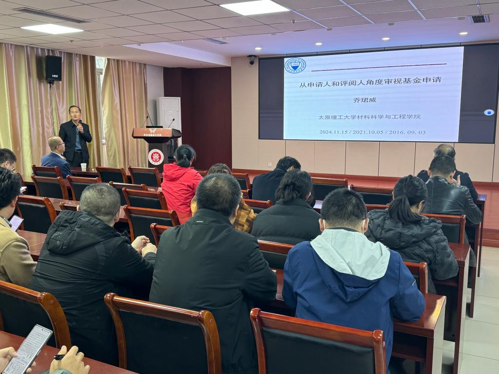 邀请了太原理工大学乔珺威教授作题为《从申请人和评阅人角度审视基金申请》的专题报告,院长王强出席并作申报动员,会议由科研副院长刘斌主持,线上娱乐平台