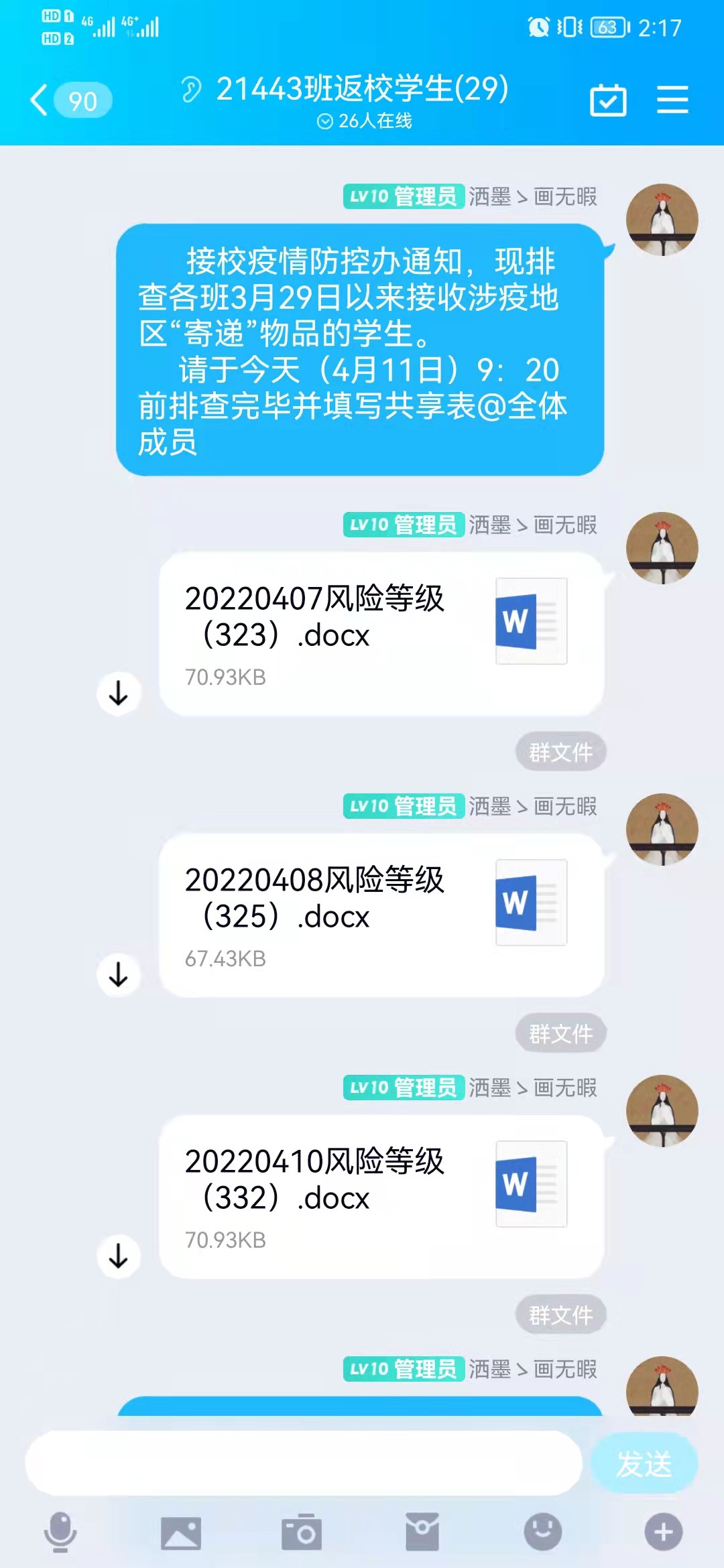 “摸排统计,确保一个都不能少”。每天的各种摸排、报表是辅导员的一项繁重工作,既要在规定时间完成,又要确保数据的准确。刘老师一遍遍统计,一遍遍核对,点对点核实学生信息,建立学生的台账,核实并录入学生核酸检测数据,收集学生特殊情况,所以刘老师不断强化网格管理,积极建立班级负责人-年级负责人-辅导员管理机制,实现分层化管理,层层联系检查核对,保证上传信息的精确性和时效性,及时获取防控一线数据。