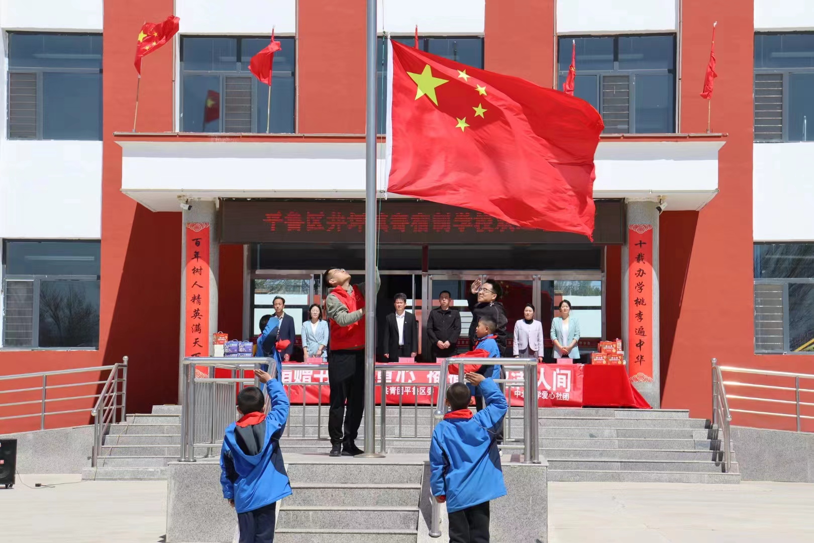 团委书记郝诗韵携爱心社数十名成员共赴平鲁区井坪镇寄宿制学校参加捐赠仪式。