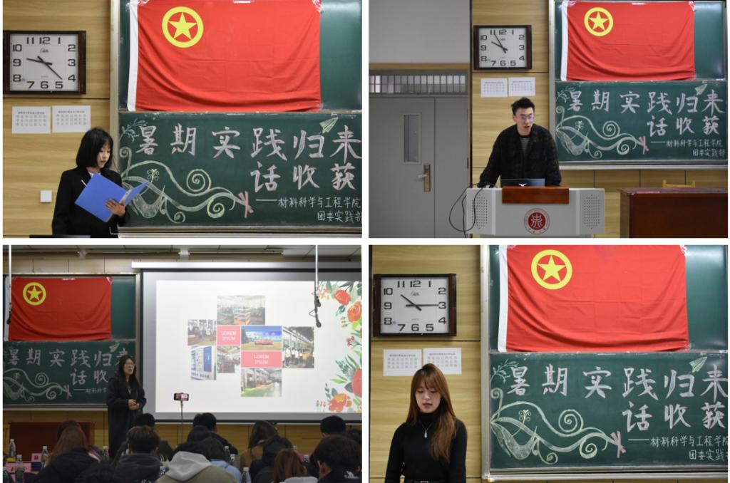 交流分享会在雄浑的共青团歌声中拉开了帷幕。22级参加实践活动的团队及个人依次分享了自己在社会实践中的感受与收获。他们从乡村振兴、社区服务、公司历练、红色教育等方面讲述自己的实践故事、分享自己的实践收获,充分展示了材料学子积极向上的精神风貌。活动最后由院团委副书记白圣杰总结发言,并宣告本次活动圆满结束。