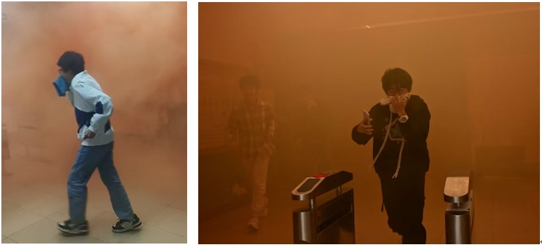 下午17时,学生疏散逃生演练正式开始。学生公寓文韬二、文韬六号楼部分楼层点燃烟饼,模拟火灾烟雾情景。值班人员第一时间发现火情,按下消防警铃,有序组织学生疏散。同学们用毛中捂住口鼻,第一时间离开宿舍,在工作人员及主讲教官的指引下,沿安全出口及逃生路线有序迅速撤离。