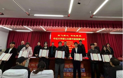 之后,主席台各位领导向中北大学爱心社学生代表颁发聘书,同学们被聘为平鲁区“爱心宣传大使”;平鲁区实验小学校长赵春叶授予中北大学爱心社社长庞学涛同学锦旗;线上娱乐平台 团委书记郝诗韵与平鲁区团委书记卢丽花共同为“爱心书屋”揭牌。