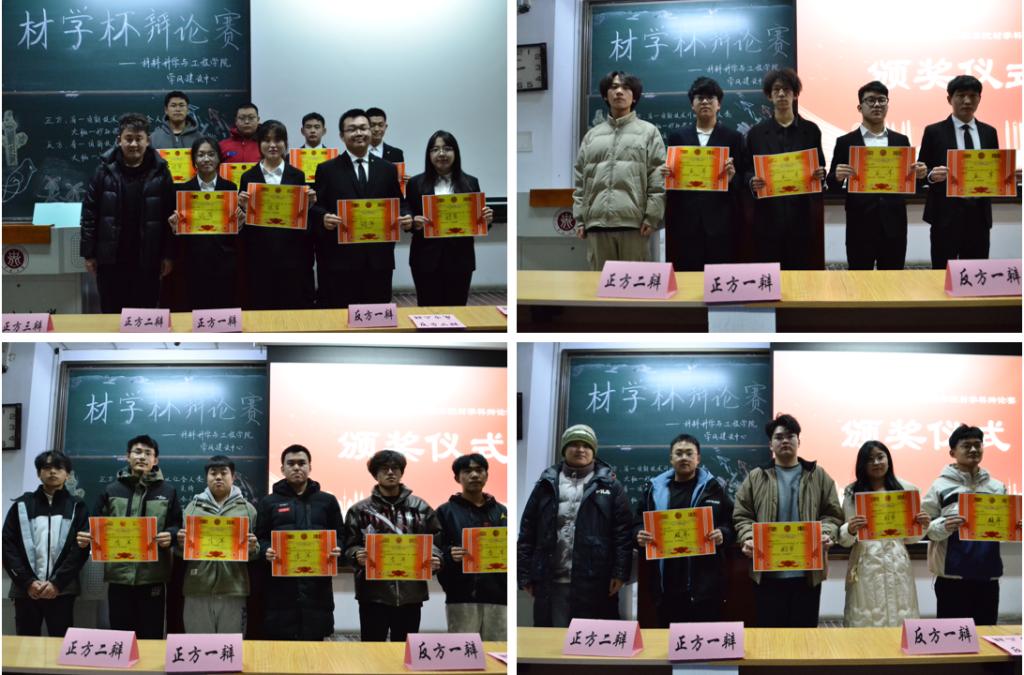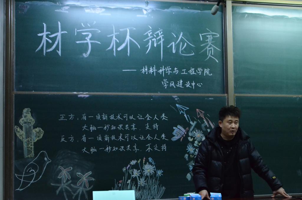 辩论队、学风建设中心、学生会文艺部在11305H教室共同举办了第一届“材学杯”辩论赛冠军争夺赛。本次活动出席的评委及嘉宾有院团委书记郝诗韵老师、学生会主席解琦臻、赵权、团委副书记白圣杰、团总支书记云卓然、各部门部长及部分线上娱乐平台