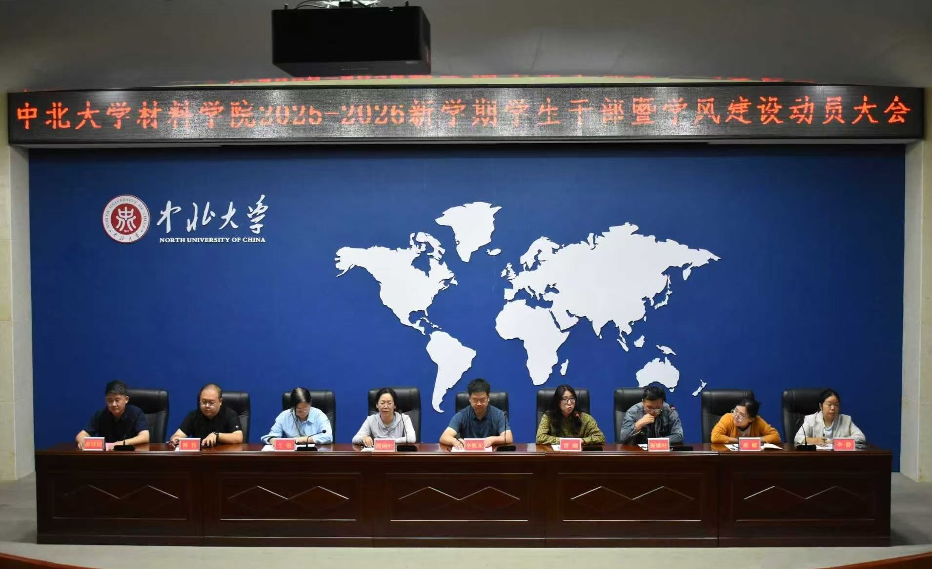 在瑾瑜国际会议中心成功召开2025-2026新学年学生干部暨学风建设动员大会。院党委副书记辛振东、团委书记郝诗韵、全体辅导员、团委学生会及各年级主要学生干部共同参会。大会由团委书记郝诗韵主持。