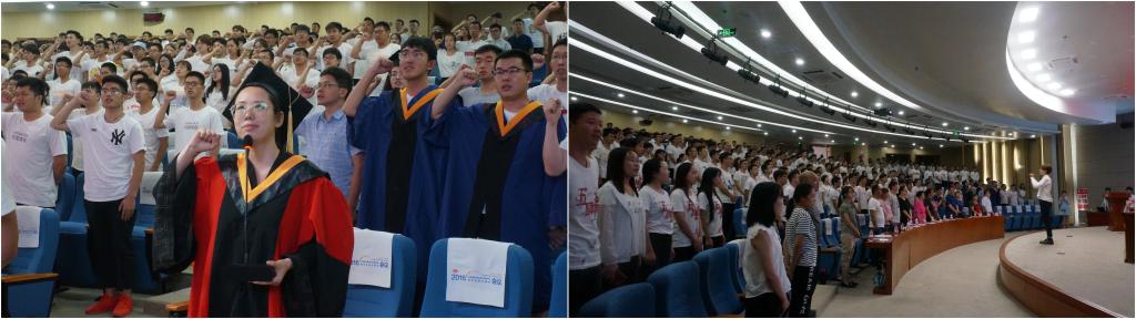 最后,全体毕业生面向国旗、校旗、院旗集体宣誓,铭记母校校训,谨遵师长教诲,请母校放心,请社会放心。然后他们以自己独特的方式表达了对母校的留念,在嘹亮的歌声中为本次毕业典礼拉下帷幕。