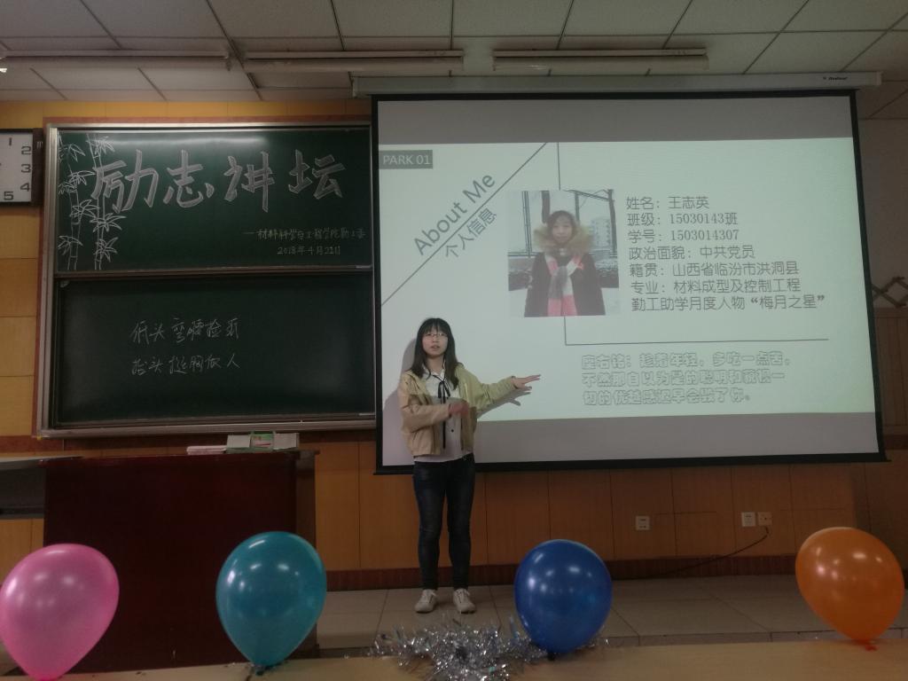 学子积极向上,不忘初心。曹智勇同学曾多次获得综合素质奖学金,并于2017年度荣获“勤工助学年度人物”,曹智勇积极乐观的生活态度感染了在场的所有学生,以自己的亲身经历告诫学弟学妹们以学业为重,积极参加社会实践锻炼。王志英同学成绩优异且荣获多项荣誉,参与勤工助学上岗工作21次,获得2017年度“梅月之星”称号,王志英以一句“低头弯腰捡纸,挺胸抬头做人”开始了此次讲坛分享,王志英丰富的实践经历告诉我们学习和工作不冲突,挑战自我极限,见证自身蜕变!刘小旗同学,开门见山,用自己的行动去影响身边的同学和朋友,坚持跑步十个月,风雨无阻,她的恒心和毅力告诉我们要想成功,必须坚持!三位主讲人用真诚感染和激励着每一位在场的师生。