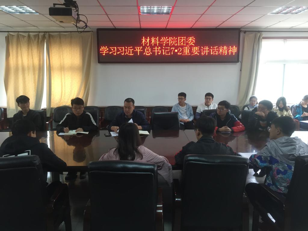 于院办二层会议室举行了深入学习领会习近平总书记“7.2”重要精神和学习宣传贯彻团的十八大精神会议。本次会议的主讲人是院团委书记毋登辉,参加本次会议的人员有院团委各部门代表和除大一以外的各年级团支书。