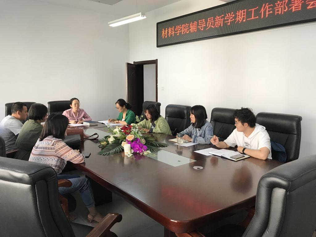 于院办会议室召开新学期辅导员工作部署会议,所有专兼职辅导员参加,会议由院党委副书记郭云霞主持。