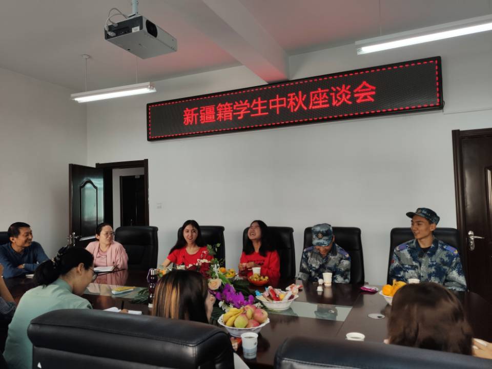 第二会议室,召开了新疆籍学生中秋座谈会。院党委书记薛亚奎、院教学副院长李迎春、院科研副院长刘斌、学生科科长殷炳叶以及班主任和7位新疆籍学生参加了此次座谈会,座谈会由院党委副书记郭云霞主持。