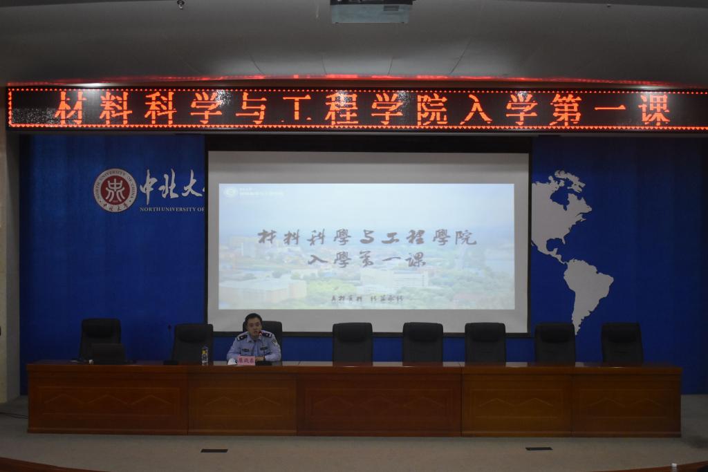 于瑾瑜国际会议中心举行了2019级新生入学第一课活动。太原市公安局直属分局原战东警官、院党委副书记郭云霞老师担任主讲