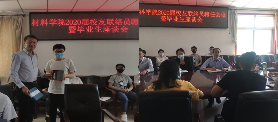 召开2020届校友联络员聘任会议暨毕业生座谈会。院党委书记薛亚奎、副书记郭云霞、教学副院长李迎春出席了本次会议,学生科科长殷炳叶及辅导员、本科毕业生代表、研究生毕业生生代表参加了本次座谈会。座谈会围绕两个主题进行。