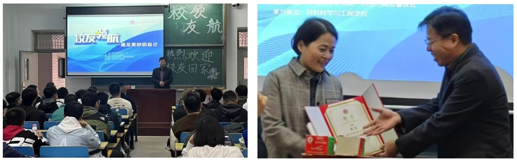 龙英校友用自己的创业精神和成功经验,鼓励同学们在未来的学习和生活中勇于面对挑战和困难,实现自己的人生价值并诚挚邀请同学们积极加入公司,共同推动碳纤维材料领域的发展。