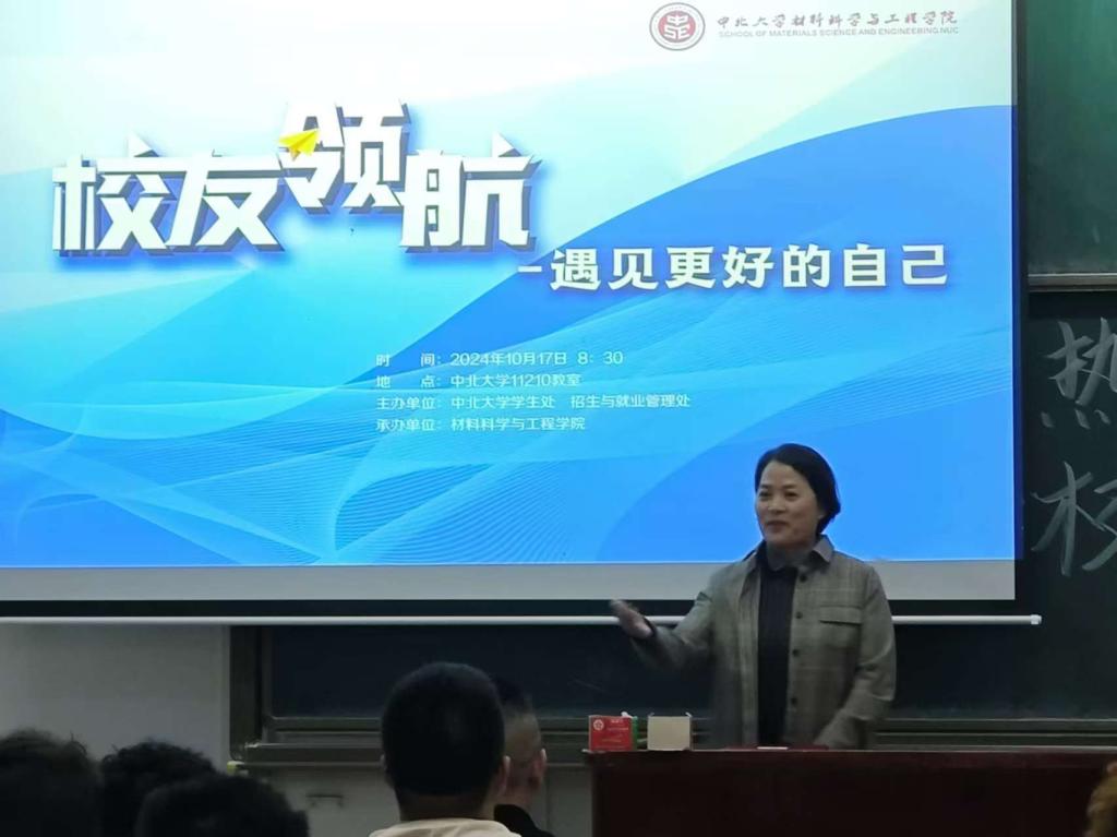 “遇见更好的自己”就业领航专题讲座在11210举行。此次讲座邀请深圳市喜德盛碳纤科技有限公司董事长龙英,现任深圳德天元实业有限公司董事长徐树升,现任中北大学深圳校友会会长、深圳春图科技有限公司董事长刘秋明三位校友担任主讲,院党委书记廖海洪、学生科老师们同百余名材料学子聆听了此次讲座。