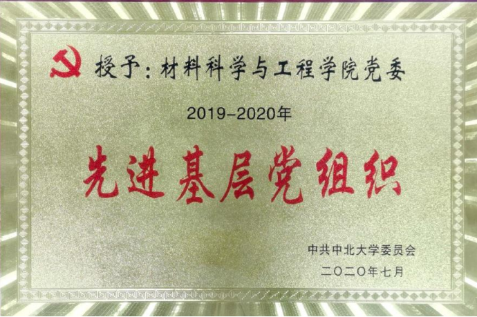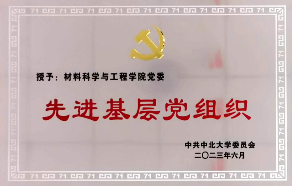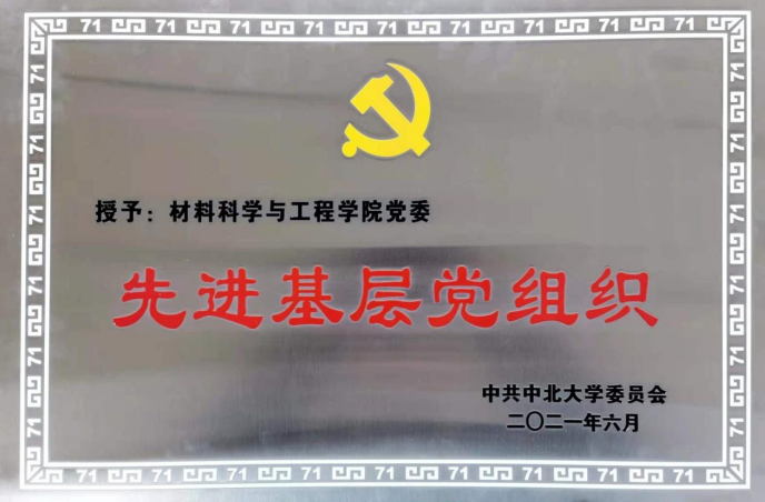 党委2020年、2021年、2023年三次获中北大学先进基层党组织;获中北大学2020年度、2022年度优秀中层领导班子;2021年,研究生材料学党支部获山西省委教育工委先进基层党组织;2022年研究生材料学党支部通过第二批“全国党建工作样板党支部”和山西省首批“全省高校研究生样板支部”验收。