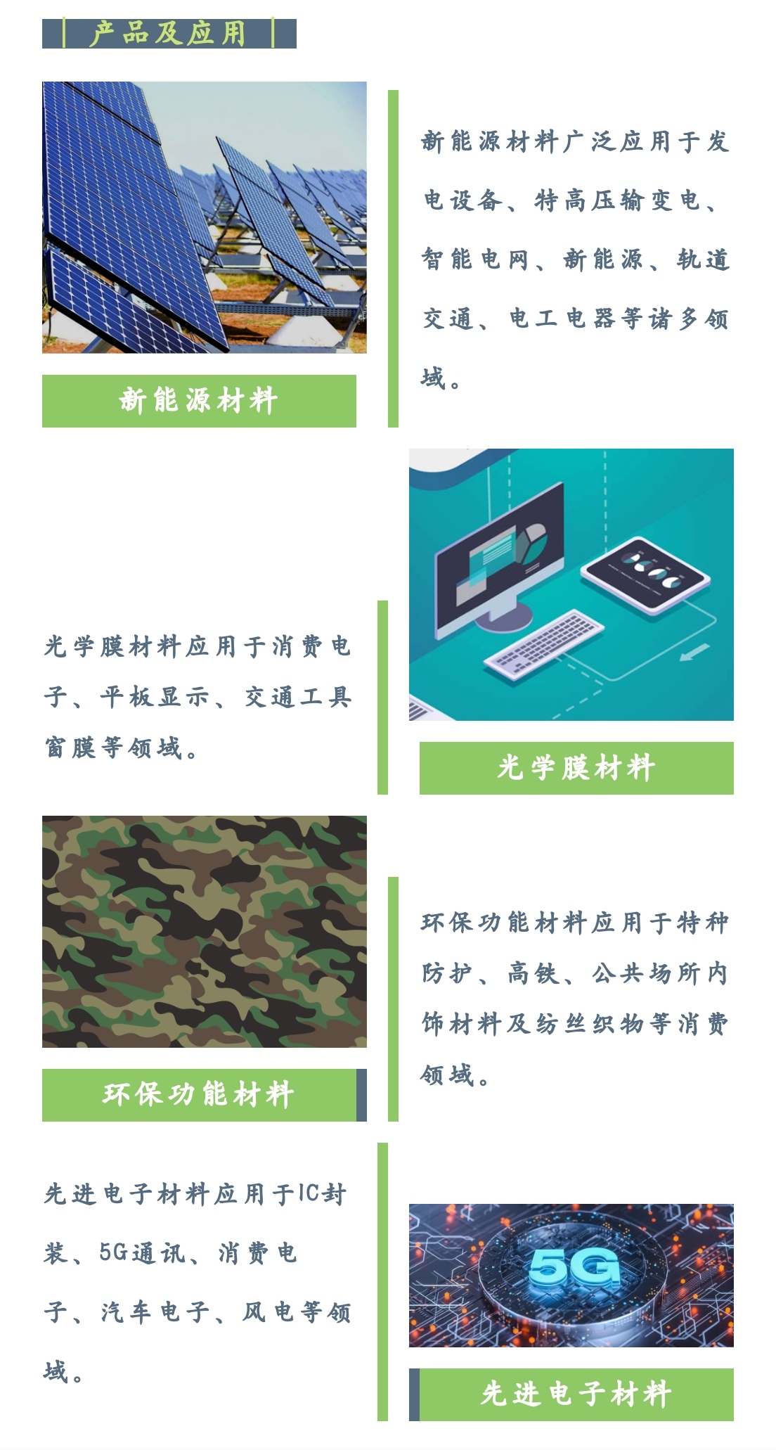 公司拥有国家绝缘材料工程技术研究中心、国家认定企业技术中心、博士后科研工作站等创新平台,以新能源材料为基础,重点发展光学膜材料、环保功能材料、先进电子材料等系列产品,服务于发电设备、特高压/智能电网、新能源、轨道交通、工业电器、家用电器、平板显示、消费电子、5G通讯、环保阻燃织物、安全防护等诸多领域。公司产品以其优异的性能和良好的声誉远销50多个国家和地区,与众多国内外知名企业建立了长期稳定的合作关系。