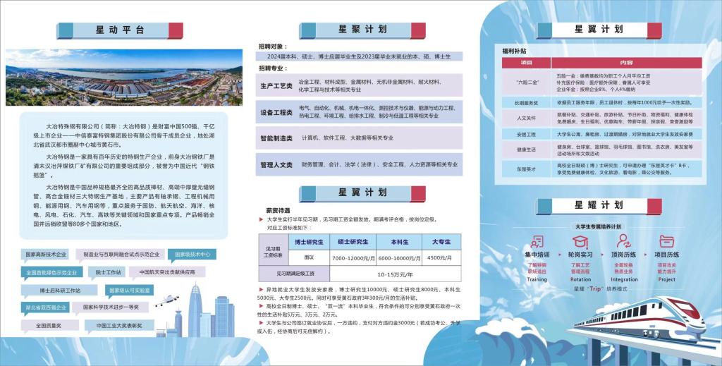 大冶特钢地处中国矿治之都、先进制造业基地湖北省黄石市,是国家高新技术企业、全国首批绿色制造示范企业,拥有国家认定企业技术中心、院士专家工作站、博士后科研工作站、湖北省特殊钢重点实验室,是中国品种规格最齐全的高品质棒材、高端中厚壁无缝钢管、高合金锻材三大特钢生产基地,工艺技术和装备具备世界先进水平。