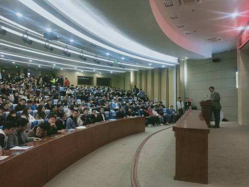 副院长刘斌教授主持,有六百余名学生认真聆听了报告,整个璟瑜会议中心座无虚席,有近一百名同学全程站着听完了报告。