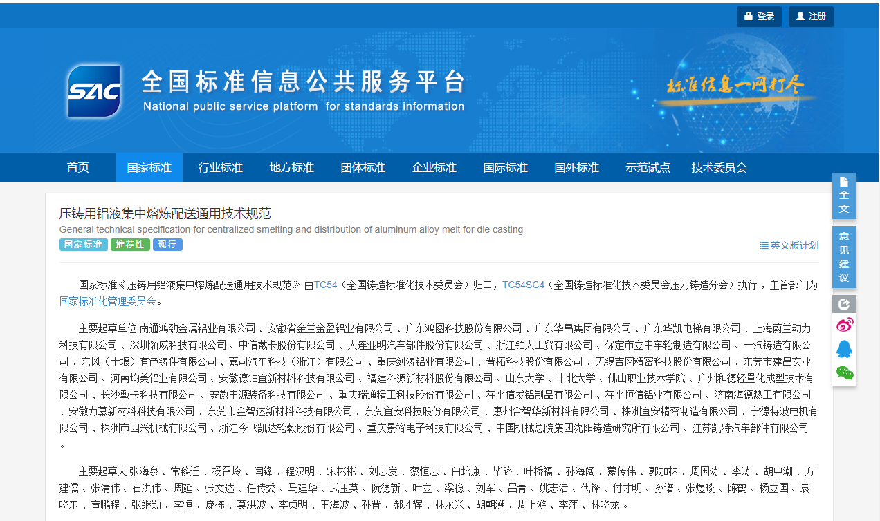 金属凝固控制与精确成形山西省重点实验室白培康教授、张文达副教授等参与编制、产学研战略合作单位南通鸿劲金属铝业有限公司牵头编制的国家标准《压铸用铝液集中熔炼配送通用技术规范》(GB/T 43920-2024)正式发布,于2024年4月25日正式实施,主管部门为国家标准化管理委员会。
