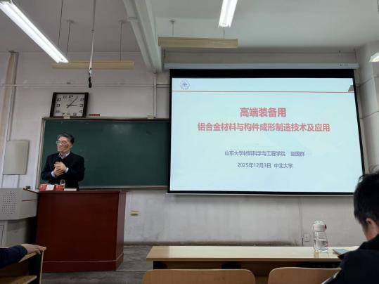 邀请山东大学赵国群教授在14203H作了题为“高端装备用铝合金材料与构件成形制造技术及应用”的专题讲座,王强院长主持,线上娱乐平台