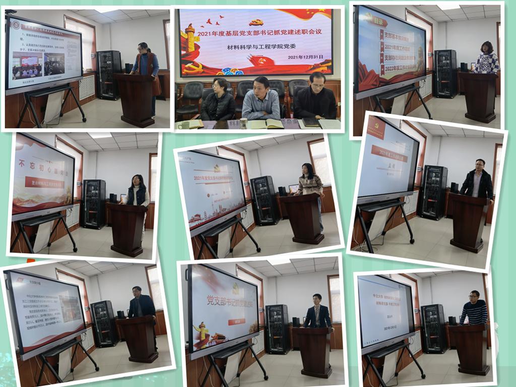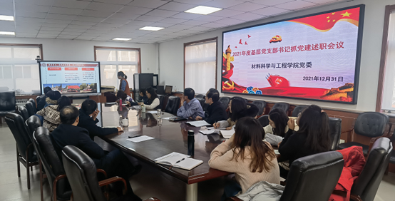 机关党支部书记、精密成形中心党支部书记、材料学党支部书记、铸造与液态成型中心党支部书记、研究生材料学党支部书记、研究生材料加工第三党支部书记、复合材料与工程学生党支部书记和材料成型及控制工程学生党支部书记围绕学习贯彻习近平新时代中国特色社会主义思想及系列重要讲话精神、党的十九届六中全会精神、山西省第十二次党代会和中北大学第三次党代会精神、开展党史学习教育、履行党支部书记党建工作“第一责任人”职责情况、落实党建工作“五化”情况、开展思想政治情况、抓党建促发展工作情况、突出问题和整改措施等方面进行现场述职汇报。其他党支部书记进行书面述职汇报。汇报过程中党委委员对所联系党支部的述职进行了指导和点评。
