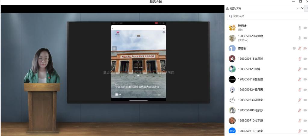 首先,党支部书记殷炳叶同志通过“学习强国”专题模块“红色VR”带领大家进行中国共产党第一次全国代表大会纪念馆云端打卡。通过VR全景地图,同志们线上参观了中国共产党第一次全国代表大会纪念馆。殷炳叶同志围绕纪念馆馆内的《日出东方——从石库门到天安门》《民族脊梁》《中流砥柱》等壁画、《共产党宣言》第一个中文全译本的翻译者陈望道--真理的味道等故事和馆藏文物事进行了详细的讲解。