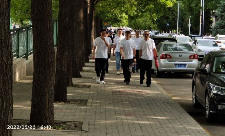 楼前集体合影留念。五月底的中北校园,枝叶葱翠,露洒长松。大家欣赏着校园内的美景,呼吸着清新甜润的空气,阔步在这个天然大氧吧之中,一路上时而交流工作,时而沟通友谊,欢歌笑语、气氛和谐,为校园增添了一抹激扬色彩。走到终点,每个人笑靥如花,享受着运动带来的快乐。