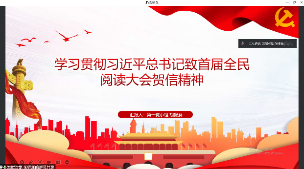 会上,研究生材料学党支部有6位同志利用腾讯会议共享屏幕功能做了学习分享。习近平总书记在致首届全民阅读大会举办的贺信中指出:“阅读是人类获取知识、启智增慧、培养道德的重要途径,可以让人得到思想启发,树立崇高理想,涵养浩然之气。中华民族自古提倡阅读,讲究格物致知、诚意正心,传承中华民族生生不息的精神,塑造中国人民自信自强的品格。希望广大党员、干部带头读书学习,修身养志,增长才干;希望孩子们养成阅读习惯,快乐阅读,健康成长;希望全社会都参与到阅读中来,形成爱读书、读好书、善读书的浓厚氛围”。
