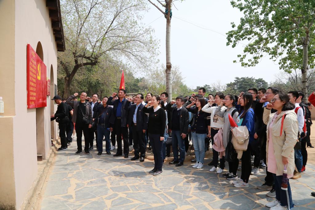 上午11时,党员们来到中共中央旧址,跟随讲解员的引领,同志们先后参观了中央军委作战室旧址、新华通讯社旧址以及毛泽东、朱德、周恩来、刘少奇等老一辈革命先辈的旧居。大家更进一步地了解到中央进驻西柏坡的历史背景,以及发生在西柏坡的重要历史事件。看着革命先辈曾使用过的桌椅板凳、驻足过的院落、曾围坐四周运筹帷幄的石磨台,同志们感慨良多,正是在这样艰苦卓绝的条件下,我们第一代国家领导人指挥了震惊世界的辽沈、淮海、平津三大战役,并进而带领全党取得了革命战争的全面胜利。党员们饱含着为“共产主义奋斗终身的”的激情,在中国共产党七届二中全会旧址前重温入党誓词,清脆而响亮的誓言,在西柏坡上空久久回响。