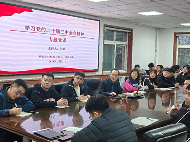 会议室召开党的二十届三中全会精神学习会,副院长刘斌同志为包联支部作题为《深入学习党的二十届三中全会精神,奋力谱写中国式现代化新篇章》的专题党课。研究生材料加工第三、第四党支部全体党员和入党积极分子参加此次会议,第三支部书记张丹同志主持会议。